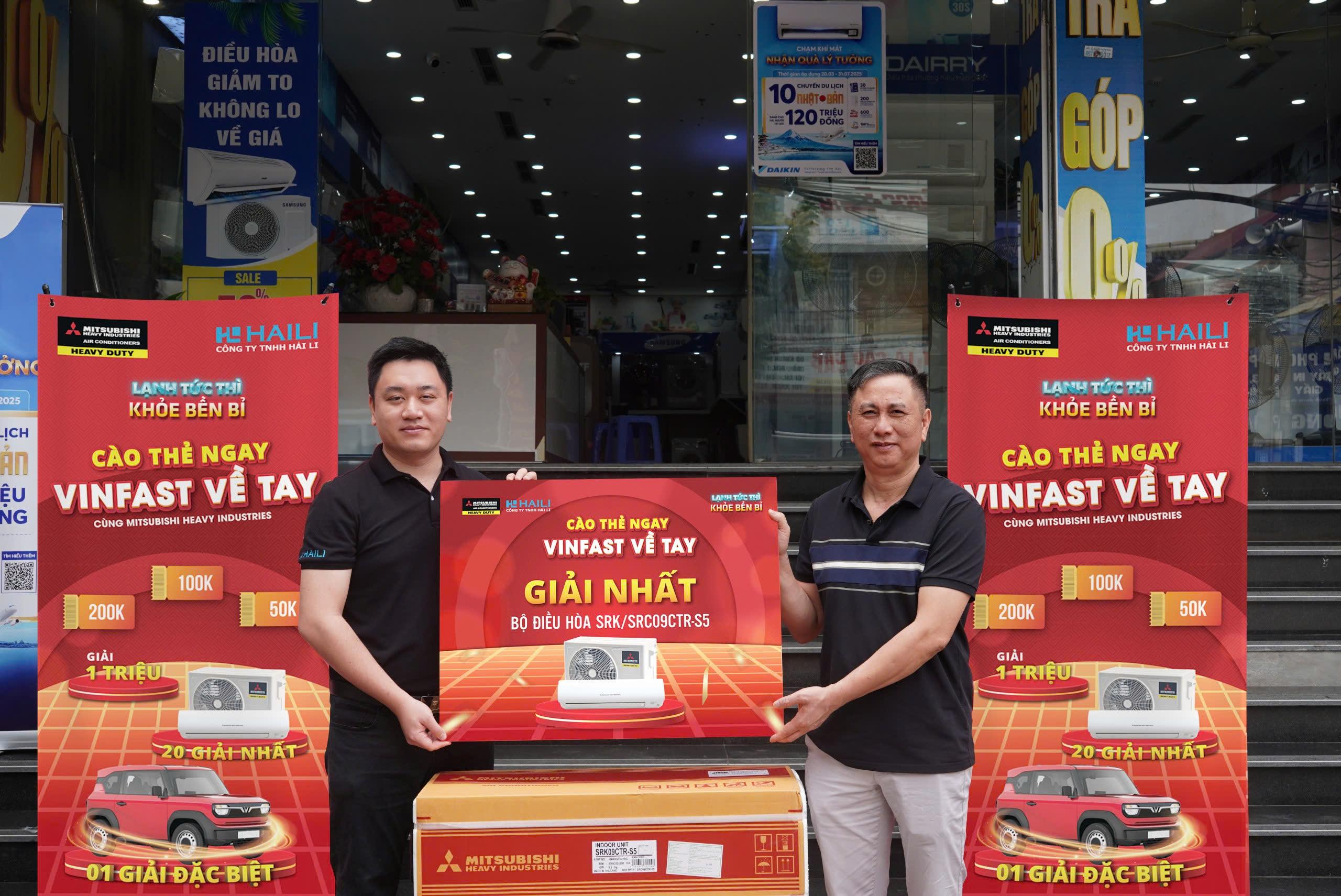 Xin chúc mừng Anh Trần Văn Lê - Thợ kỹ thuật đến từ Vĩnh Phúc đã trúng giải nhất của chương trình - 01 bộ điều hòa không khí Mitsubishi Heavy Industries SRK/SRC09CTR-S5.