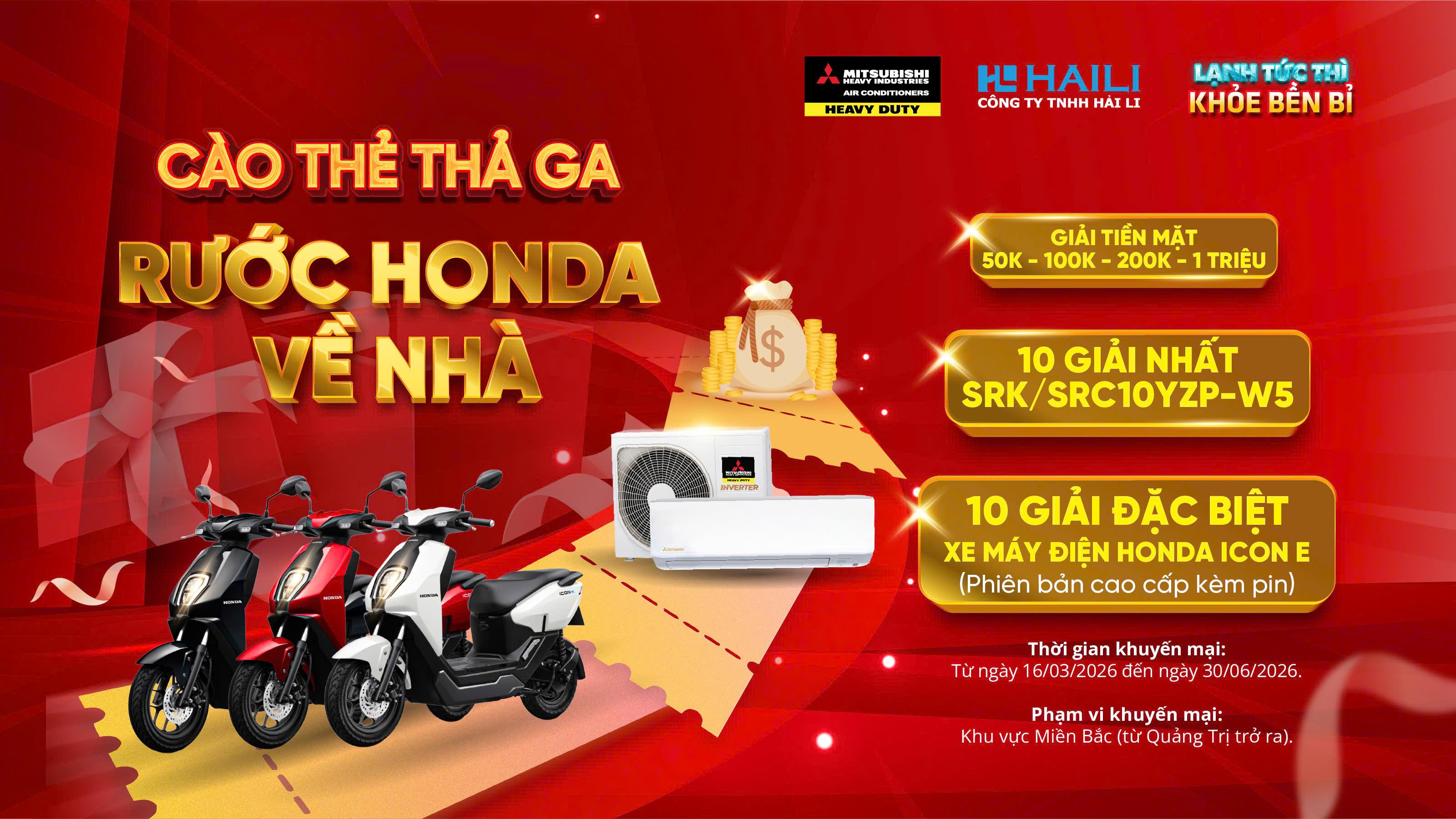 3 tháng vàng săn Honda cùng Mitsubishi Heavy Industries! Chặng đua chính thức khởi động từ tháng 3 này! Chỉ 3 giây cào thẻ, anh em đại lý lắp đặt khu vực miền bắc có cơ hội rinh hàng chục ngàn phần quà hấp dẫn từ mitsubishi heavy industries: